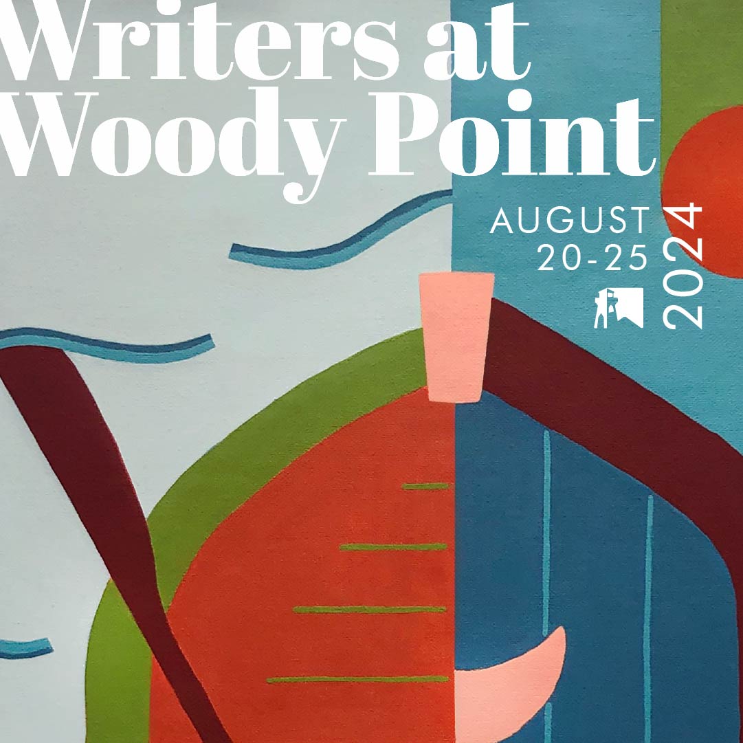 Poster for @writersatwp 2024 — Water & acrylic on rolled canvas ~ 16 x 22 + Digital and Print layout.